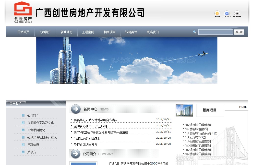 广西创世房地产开发有限公司于2005年4月成立,公司性质为有限责任公司,注册资金1000万元人民币,经营范围为房地产开发、建筑装饰材料、建筑工程机械设备的销售及租赁,具有房地产开发三级资质、独立法人资格,法定代表人、董事长、总经理廖桂生先生。