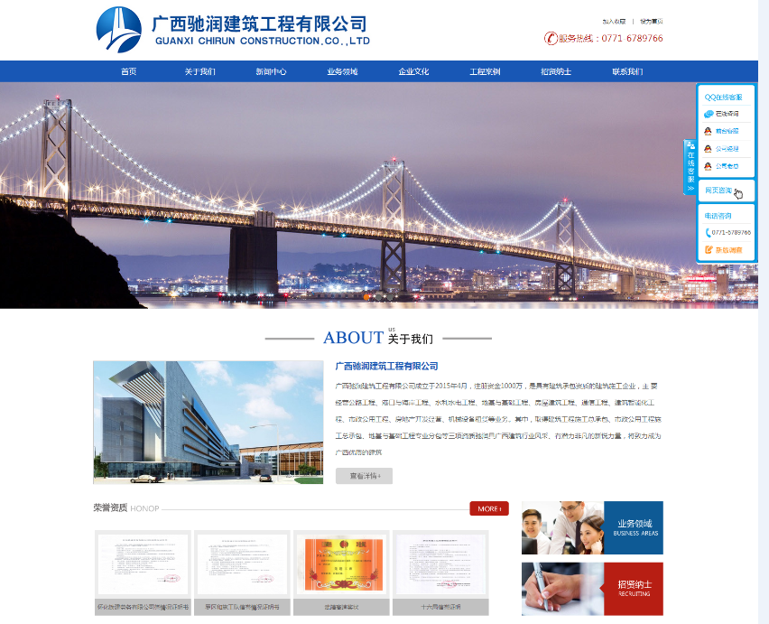 广西驰润建筑工程有限公司成立于2015年4月,注册资金1000万,是具有建筑承包资质的建筑施工企业,主 要经营公路工程、港口与海岸工程、水利水电工程、地基与基础工程、房屋建筑工程、通信工程、建筑智能化工 程、市政公用工程、房地产开发经营、机械设备租赁等业务。